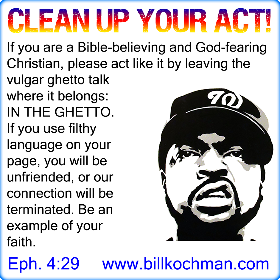 WARNING! If I happen to visit your Facebook timeline or page, or another social network where you happen to participate, and if I discover that you use foul language which is NOT befitting for a Bible-believing Christian, be advised that I will not hesitate to unfriend you, or disconnect you, or block you, immediately. What is wrong with you? Shame on you! What kind of a Christian witness are you being to others who may visit your page? Are you a member of this present evil world, or do you belong to Jesus Christ? If you belong to Jesus, then reflect HIM, and NOT the mannerisms of the world! I would be ashamed to have some of my friends visit your page! Clean up your act!