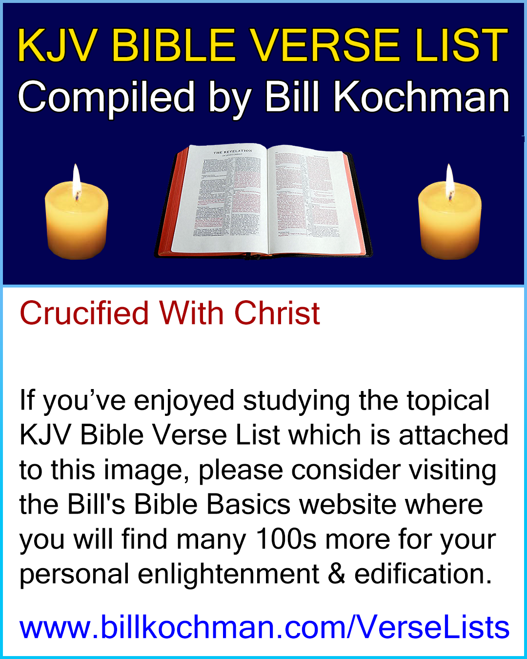 If you would like more info regarding the origin of these KJV Bible verse lists, go to https://www.billkochman.com/VerseLists/. Thank-you!