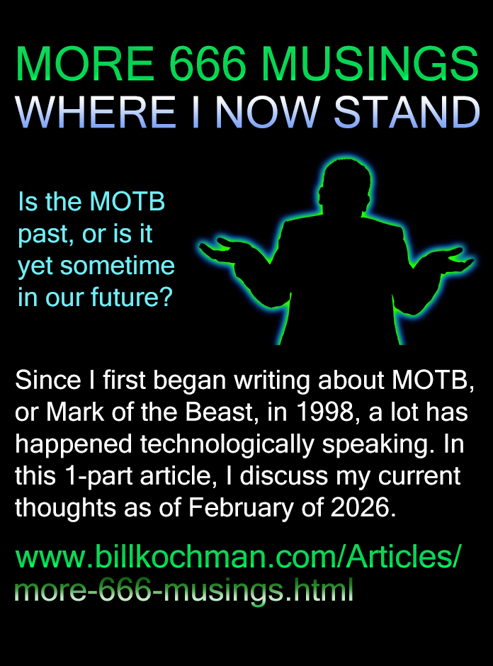 Bill Kochman is a Christian writer, poet and song writer, graphic artist, online evangelist and founder and webmaster of the Bill's Bible Basics website and blog. His interests include tropical fish, Macintosh computers, web design, writing poetry, God's natural creation and his cats, Polo and Eljio.